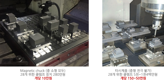 셋팅 시간 단축, 편리한 작업 및 환경 개선, 가동율 상승, 비교제품 대비 1/10~1.4 저렴한 가격