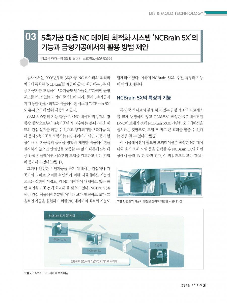 164월간 금형기술 5월호 기사 - NCBrain 5X 기술