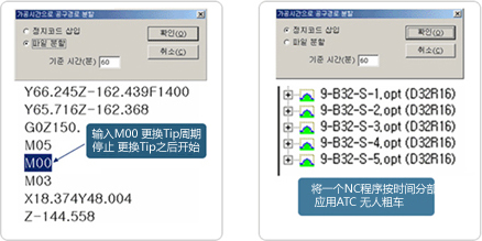 粗加工时设置更换刀具或刀片的时间,让机器临时停止,