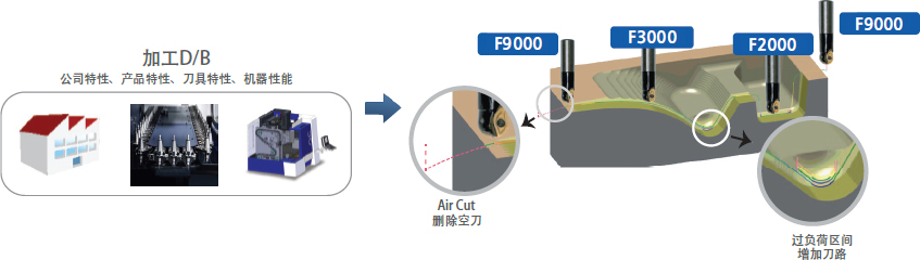 | 2. 加工时间 | - 依据加工D/B的优化加工 - 最佳的加减数提高30%~50%加工时间 | - 根据技术人员的水平存在差异 - 机器加减数有限 |