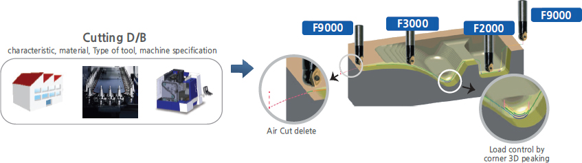 | 2. Time | - Otimized machining with best D/B! - 30~50% faster with optimized adjustable feedrate | - Wide variations depending on technical level! - Limit with machine speed |