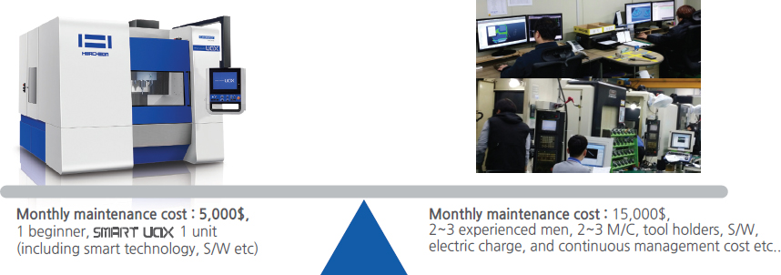 | Identical investment terms | 1 unit( including Smart technology S/W,tools) | NC machine 2~3 units, tools, CAM etc |