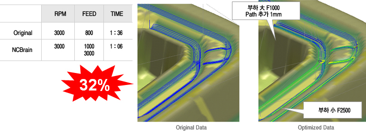 과부하 구간 패스 추가 및 이송 속도 제어 사례
