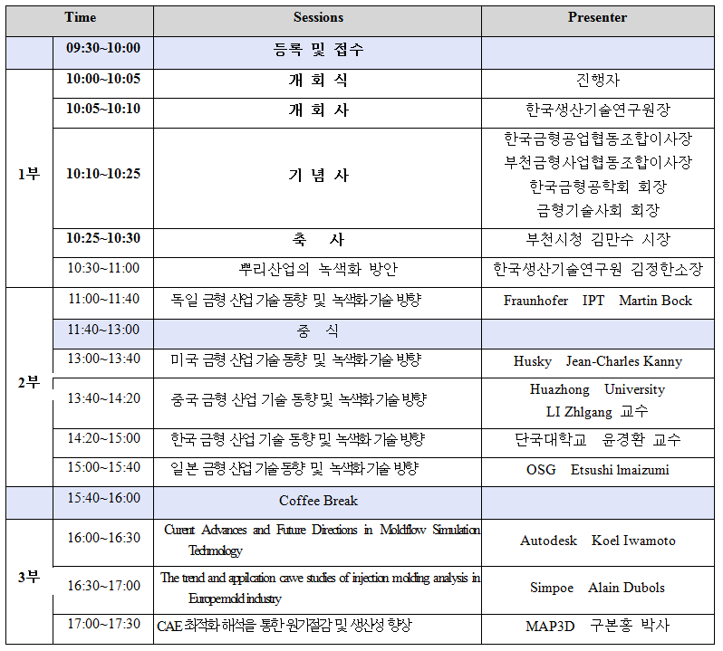 금형산업 대.중소기업을 비롯한 관련 학계, 유관기관 관계자를 대상으로 세계 금형산업 기술동향 및 뿌리 금형기술의 녹색화 미래 방향제시